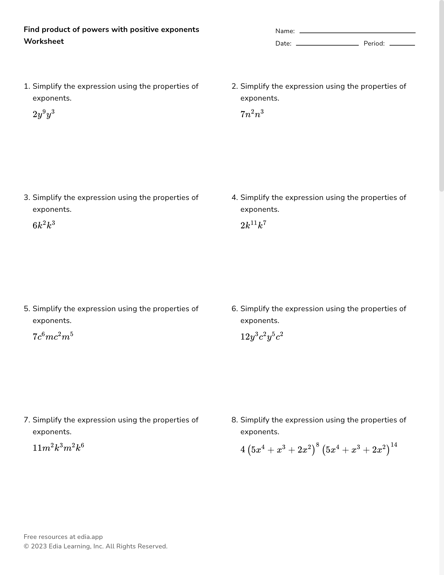 Exponents are a fundamental concept in mathematics, and understanding their properties is essential for solving various mathematical problems. An exponent properties worksheet is a valuable tool that helps students practice and master these properties through a series of exercises and questions.