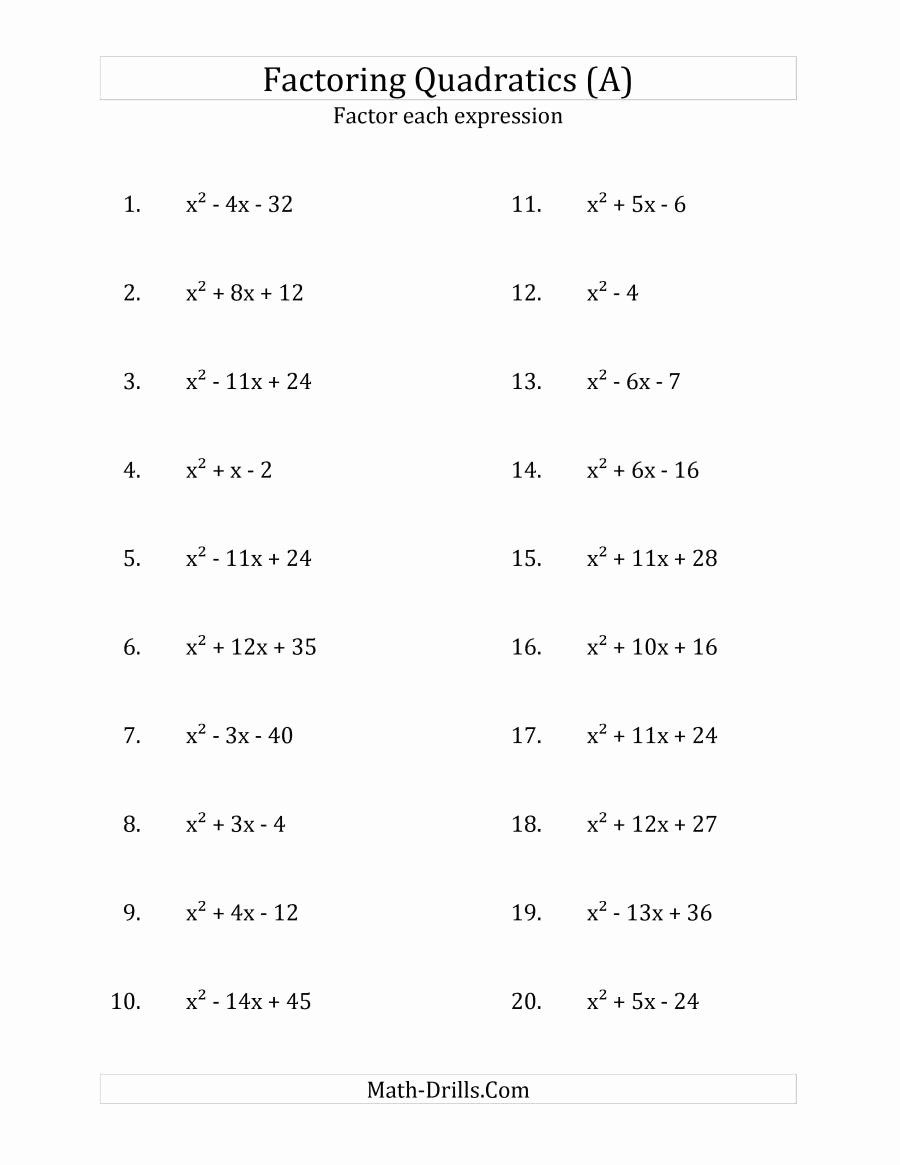 Furthermore, practicing with factoring worksheets can improve students’ problem-solving skills and enhance their ability to analyze and manipulate algebraic expressions. By challenging themselves with a variety of factoring problems, students can develop critical thinking skills and learn how to approach different types of equations systematically. This practice can also help students build confidence in their mathematical abilities and prepare them for more advanced algebraic concepts that require strong factoring skills.