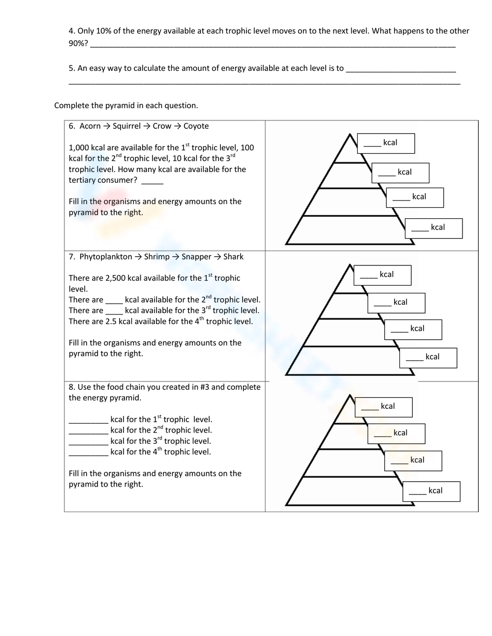 Food Webs and Energy Pyramids Worksheet Answer Key