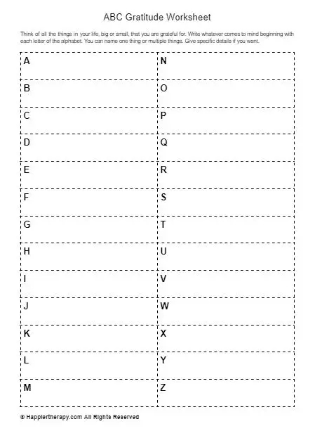 ABC Gratitude Worksheet HappierTHERAPY