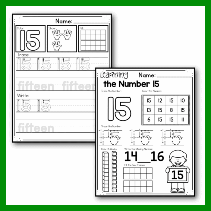 Our free printable number 15 worksheet for preschool includes various activities that focus on the number 15. Children will have the chance to trace and write the number, color in 15 objects, and even complete simple addition and subtraction problems involving the number 15. The worksheet is designed to be interactive and engaging, making learning fun for young learners.