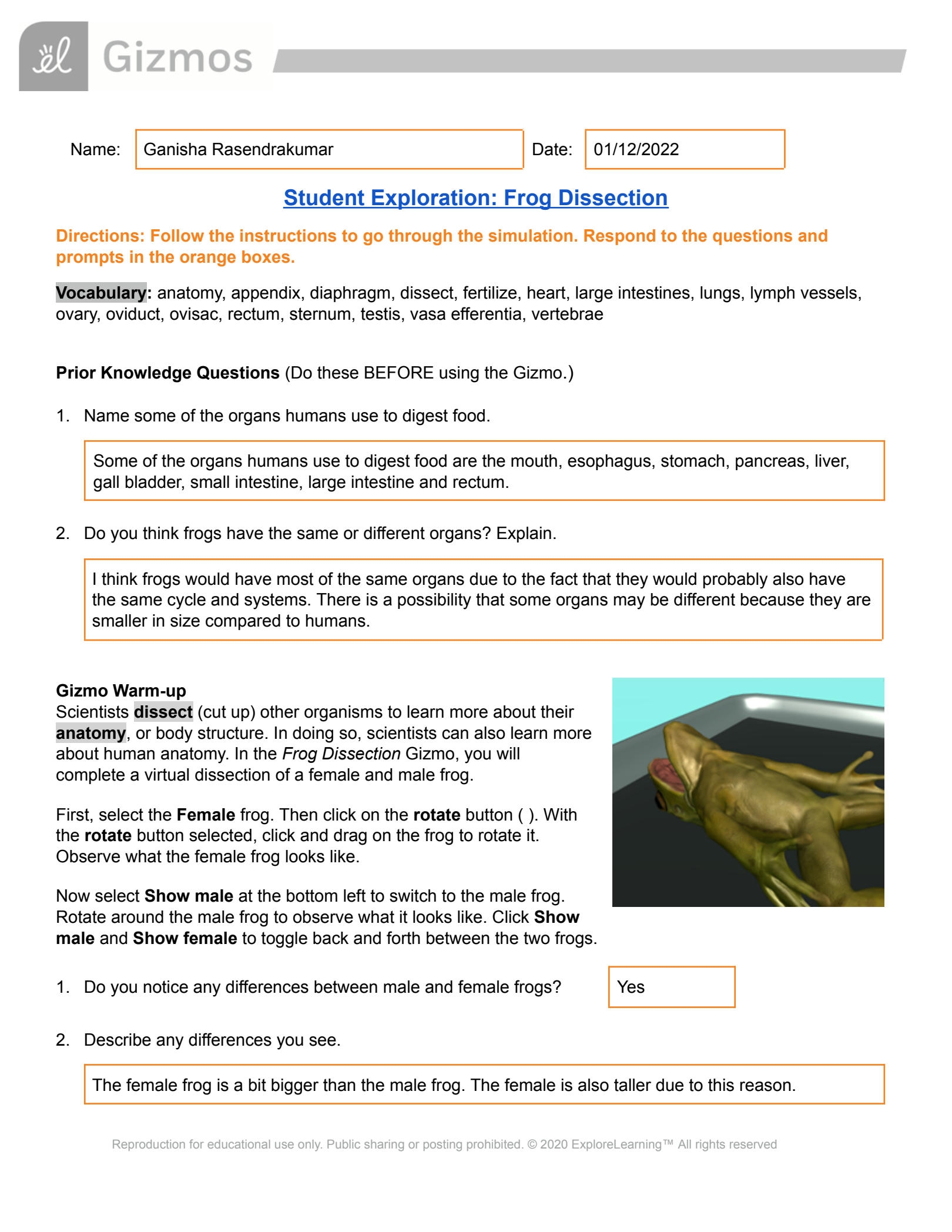 Overall, a frog dissection worksheet plays a crucial role in enhancing the learning experience for students during a frog dissection. It provides a structured framework for students to follow, promotes active learning, and serves as a valuable study resource. By incorporating a frog dissection worksheet into the dissection process, educators can help students gain a deeper understanding of frog anatomy and foster a greater appreciation for the natural world.