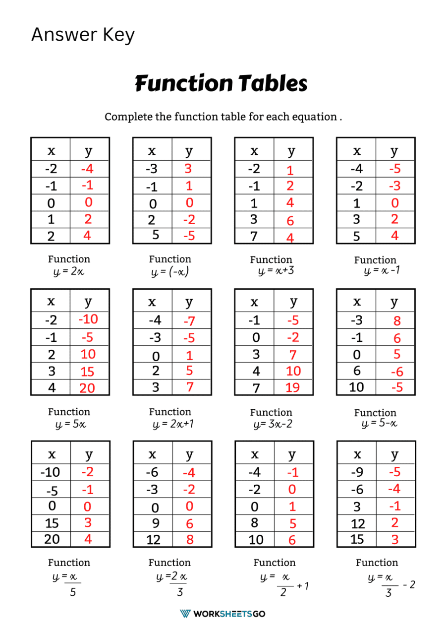 One of the key benefits of using function table worksheets is that they provide a structured way for students to practice applying mathematical concepts. By working through the tables and identifying patterns, students can develop their critical thinking and analytical skills.
