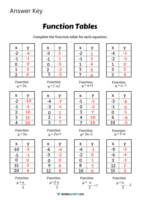 Teachers can also use function table worksheets to assess student understanding and identify areas where students may need additional support. By reviewing the completed worksheets, teachers can gain insights into each student’s problem-solving approach and overall grasp of the material.