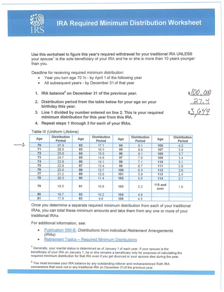 Irs Ira Required Minimum Distribution Worksheet