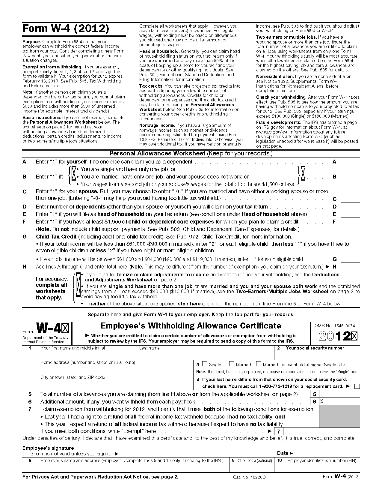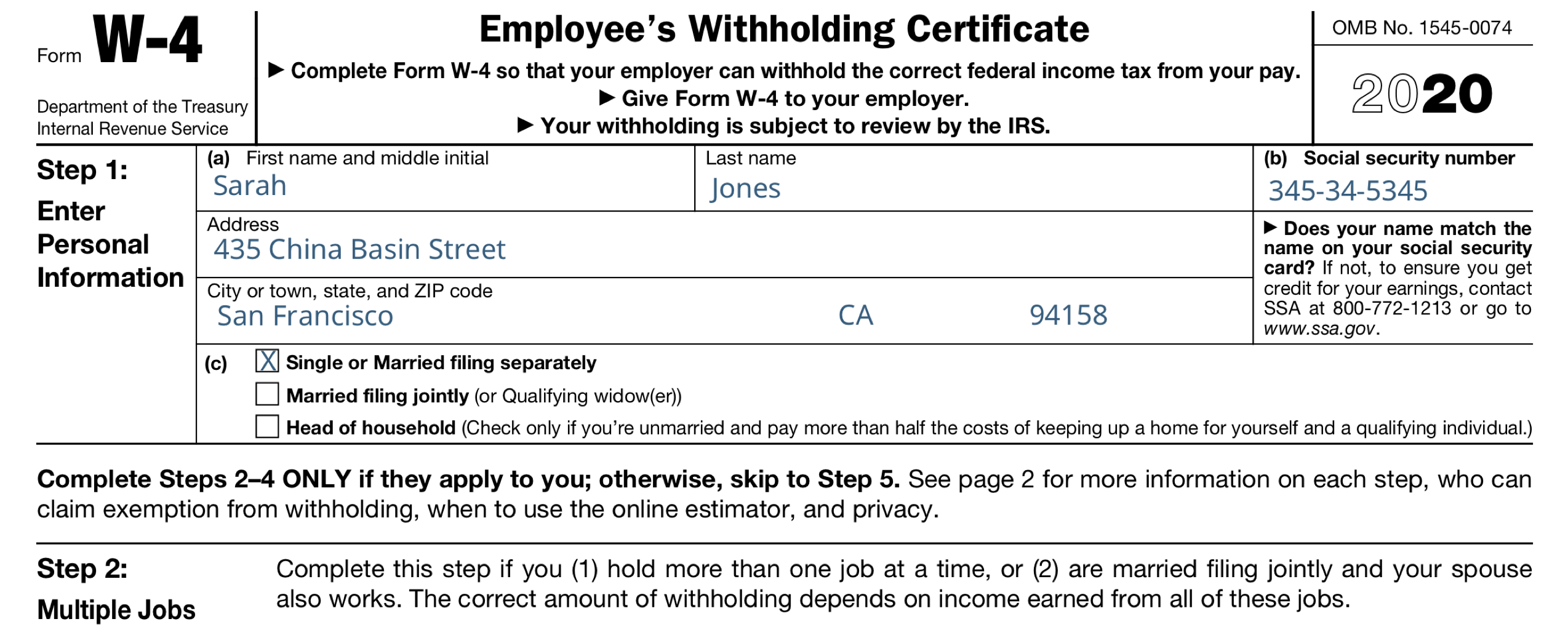 IRS Multiple Jobs Worksheet