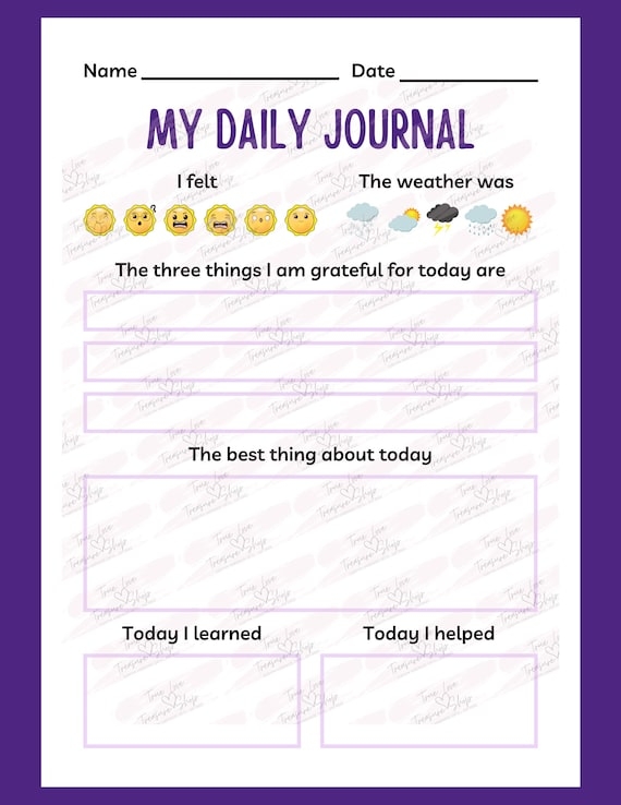 Daily Journal Entry For Students Kids Teens Home School Worksheet