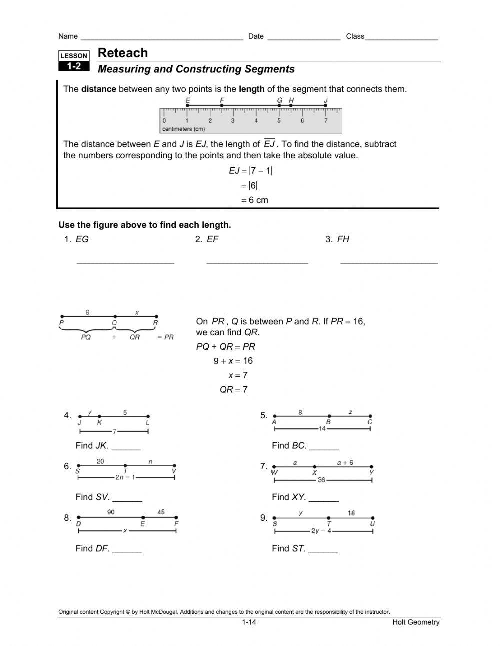 Line Segment Addition Worksheet