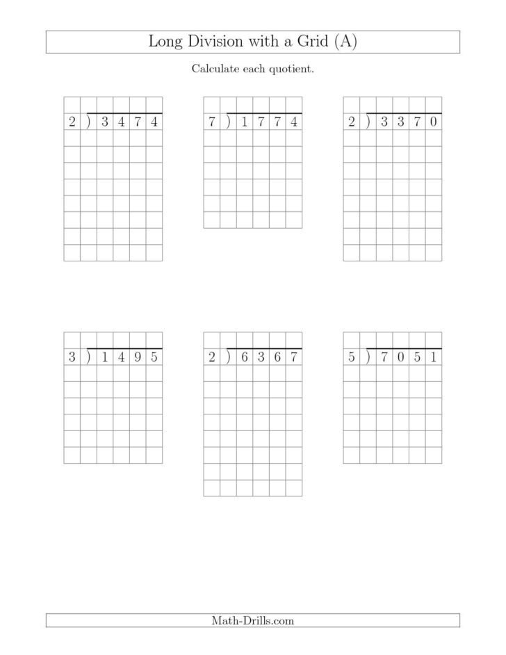 Long Division Worksheets Grid Paper Long Division Worksheets