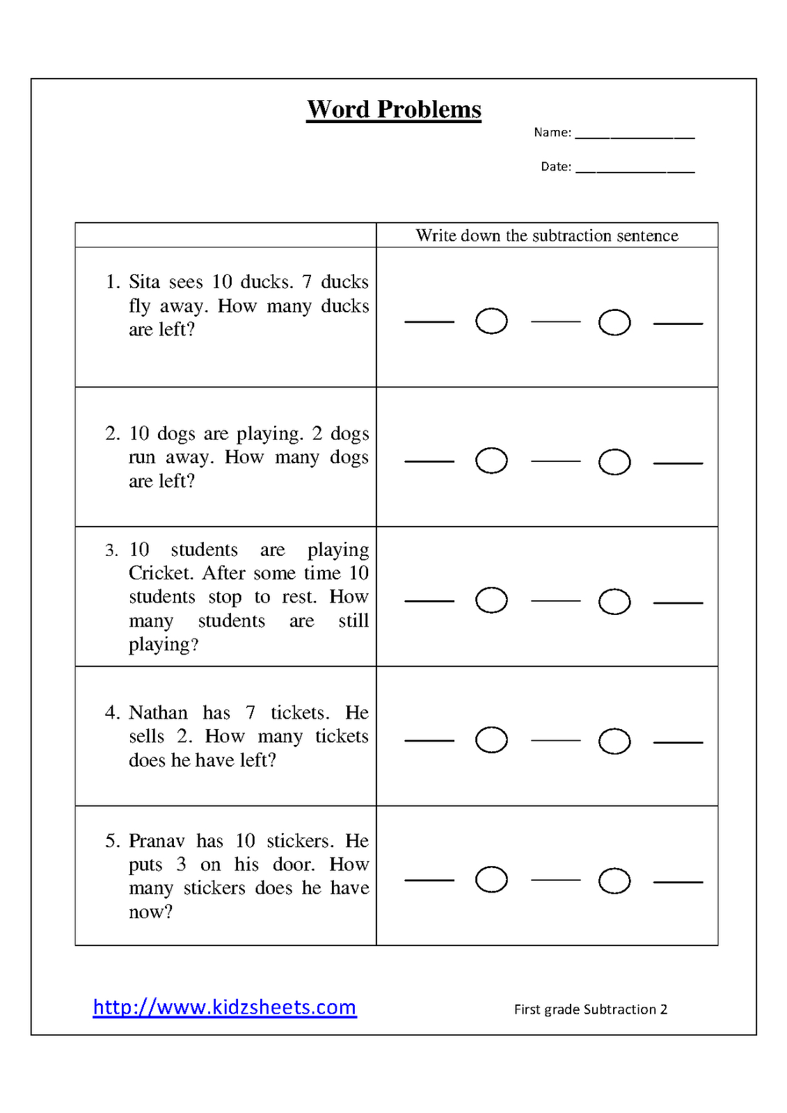 math problems for 1st graders worksheets
