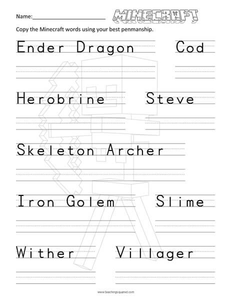 Minecraft Worksheets