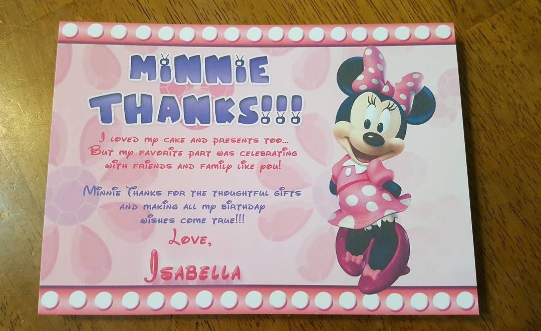 Minnie Mouse Thank You Card With Photo Minnie Thank You Card Note