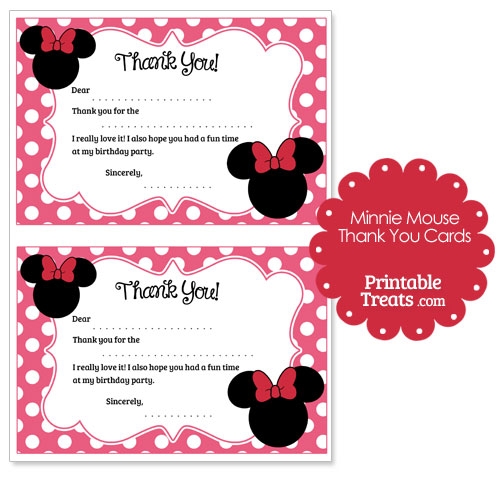 Printable Minnie Mouse Thank You Cards Printable Treats