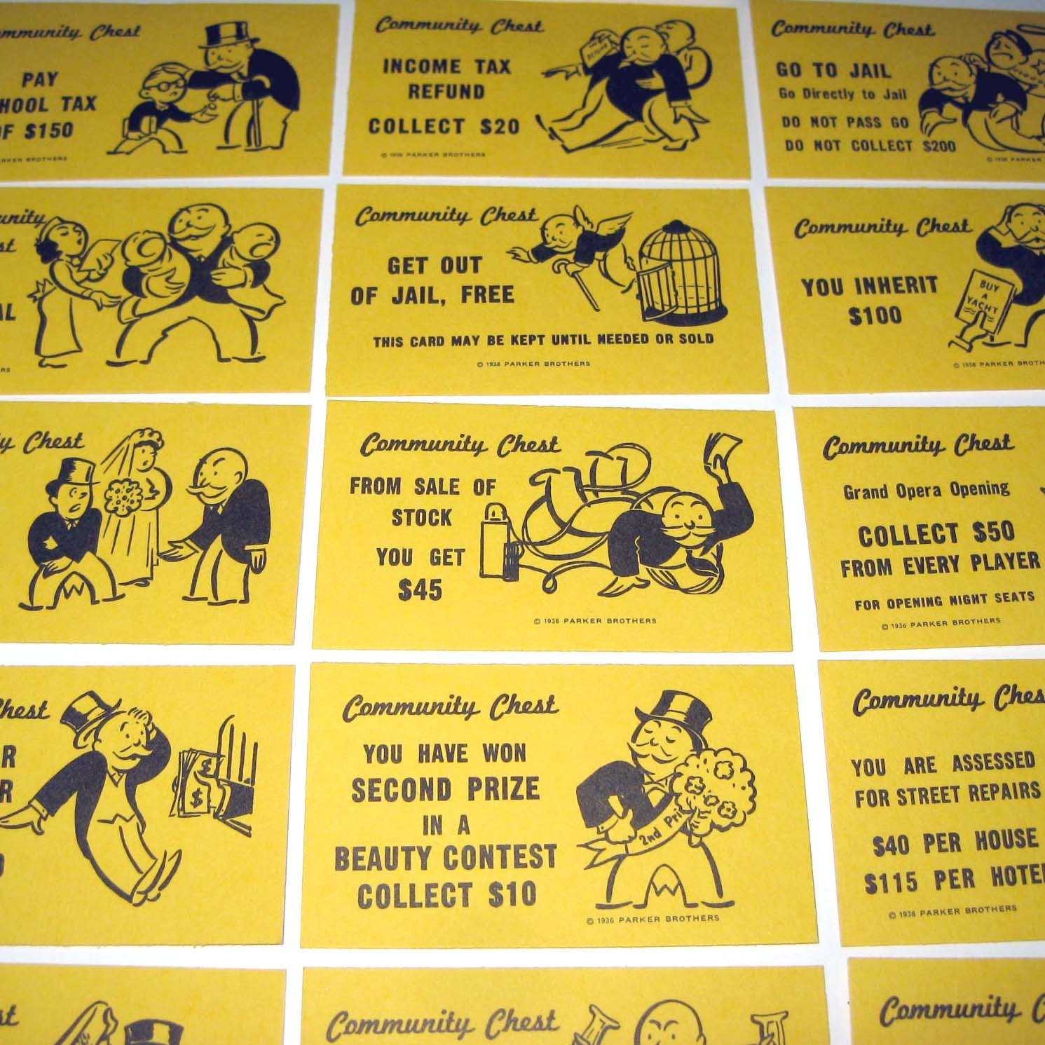 Free Monopoly Chance Community Chest Cards PDF Printable Template