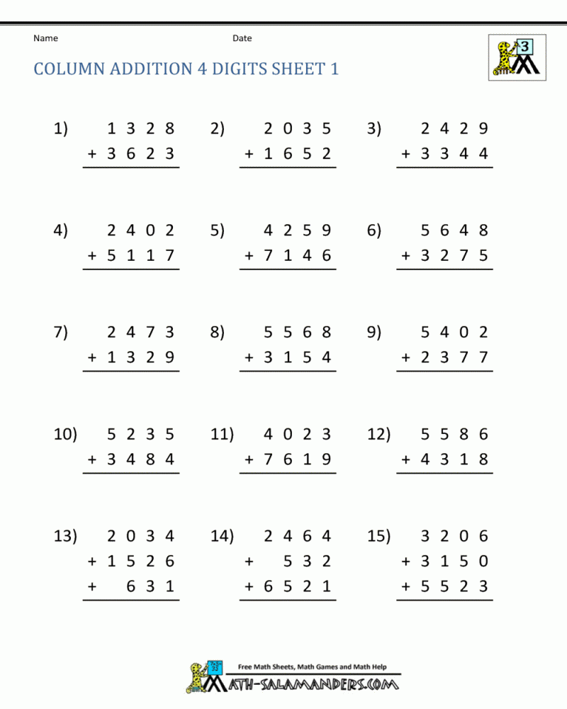 Addition Worksheet Grade 4 Math Worksheets Printable