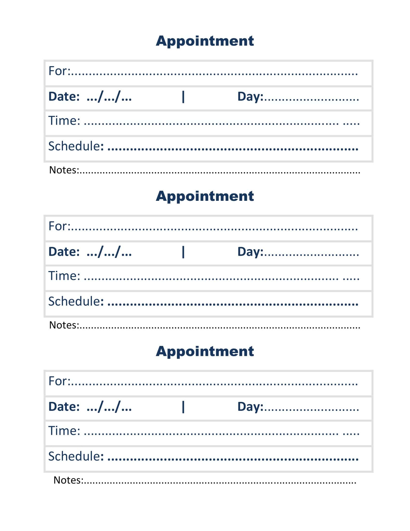 Additionally, printable blank appointment cards can be easily printed at home or at a local print shop, making them a cost-effective solution for staying organized. You can print as many cards as you need, ensuring that you always have a supply on hand for your appointments.