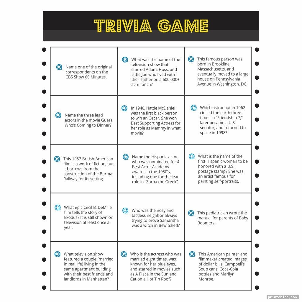 Printable Trivia For Seniors Gridgit