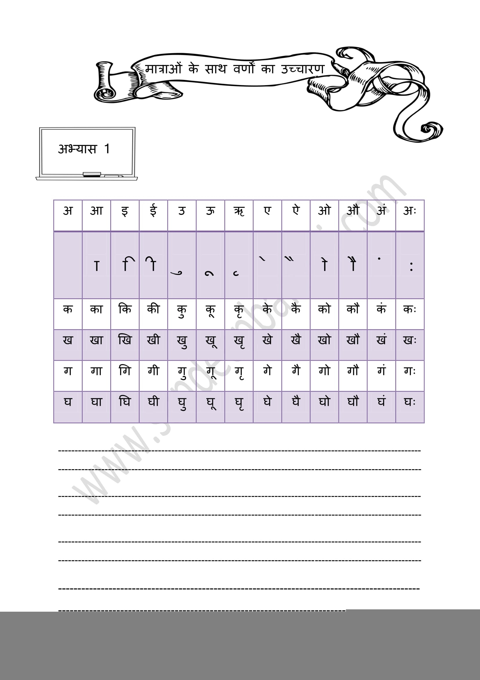 Each worksheet typically includes the Marathi alphabet letter along with guidelines for writing it. You can print these worksheets and use them to practice writing each alphabet multiple times. This repetition can help you improve your handwriting and memorize the shape of each letter.