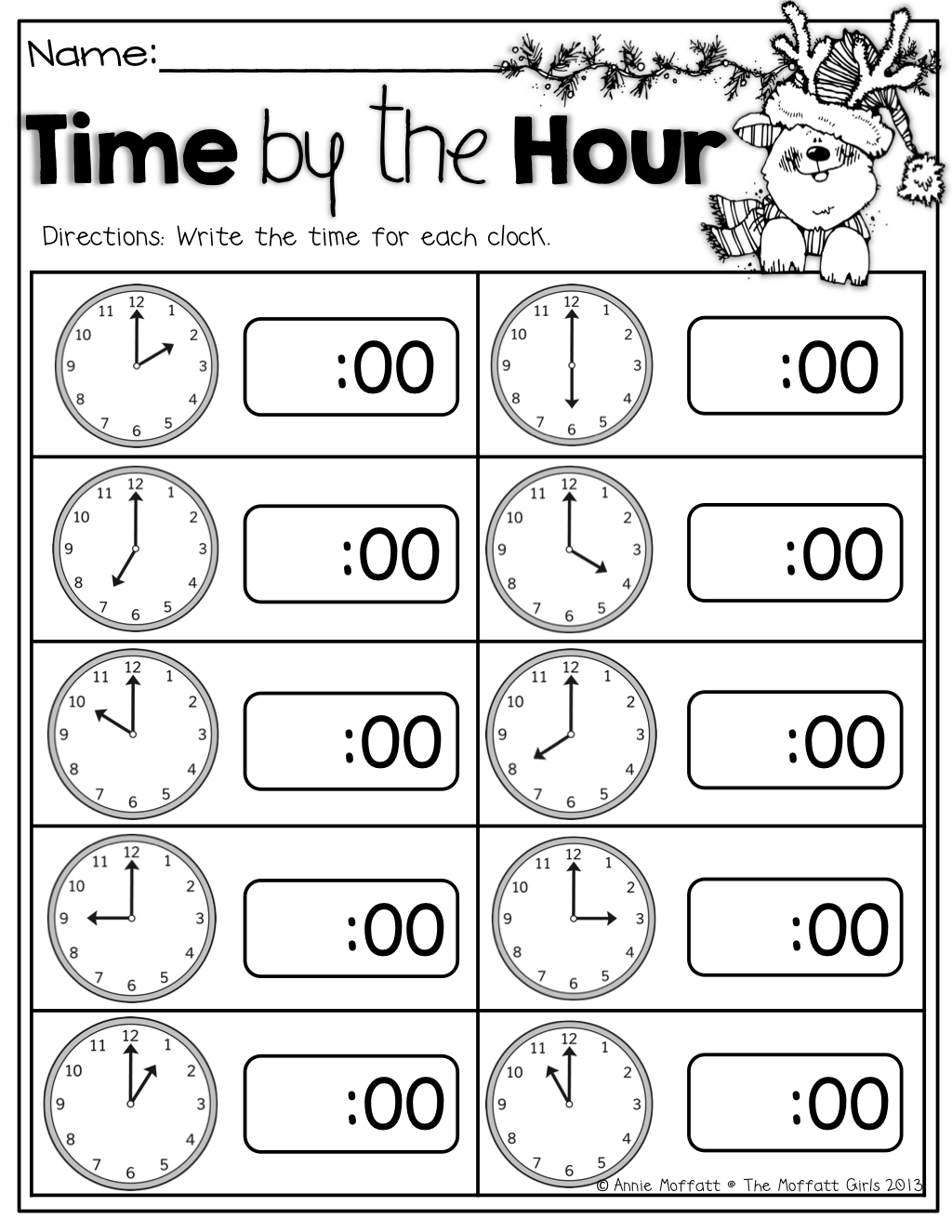 telling time to the hour worksheets