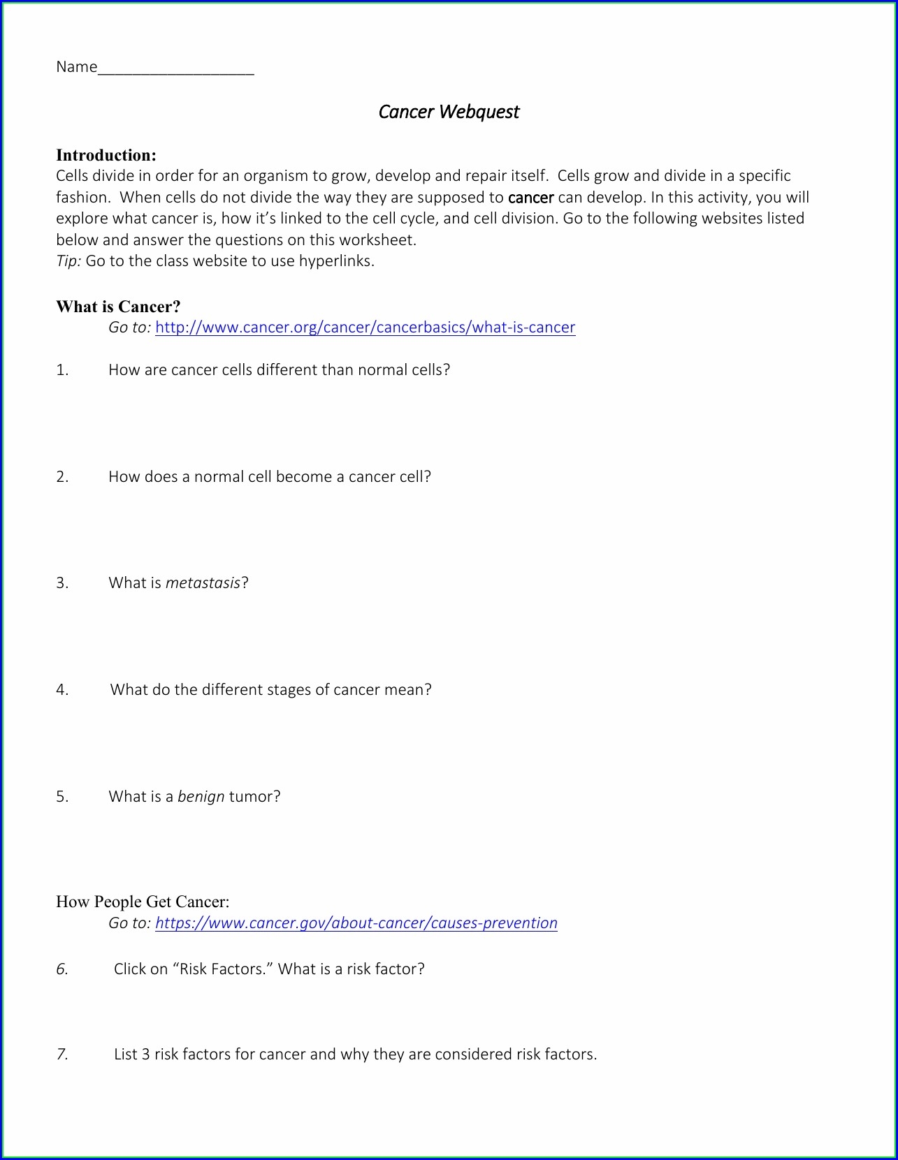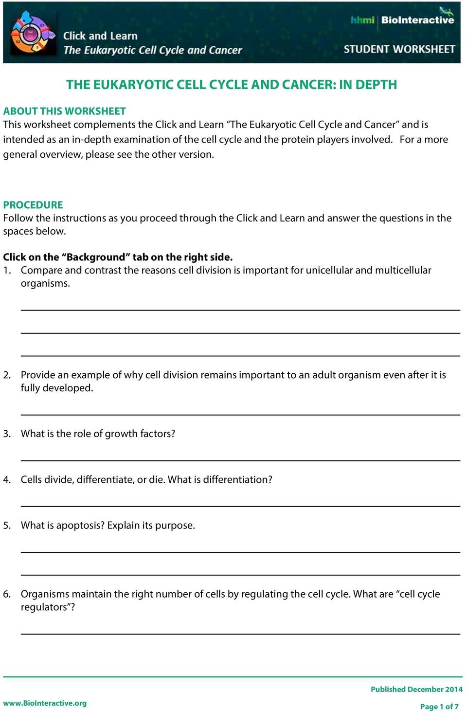 The Eukaryotic Cell Cycle And Cancer Worksheet Answers Printable Word