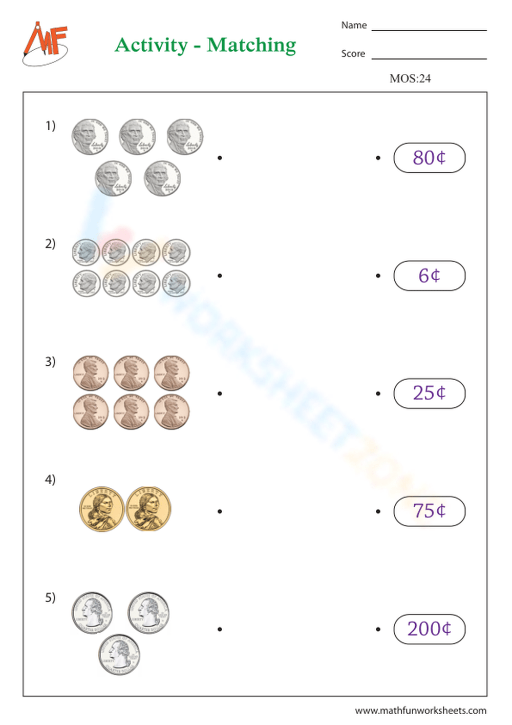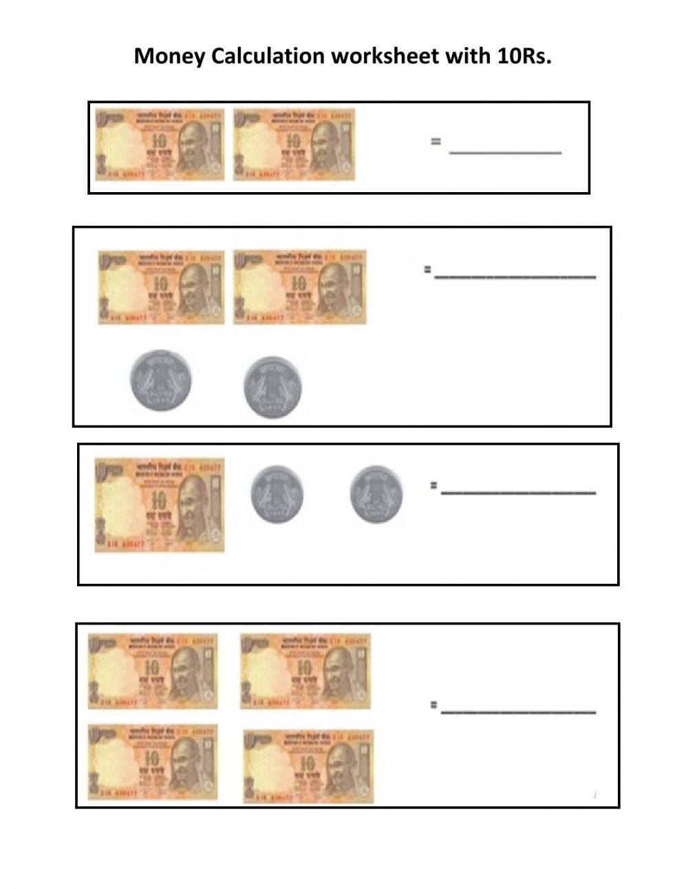 Worksheet on Money