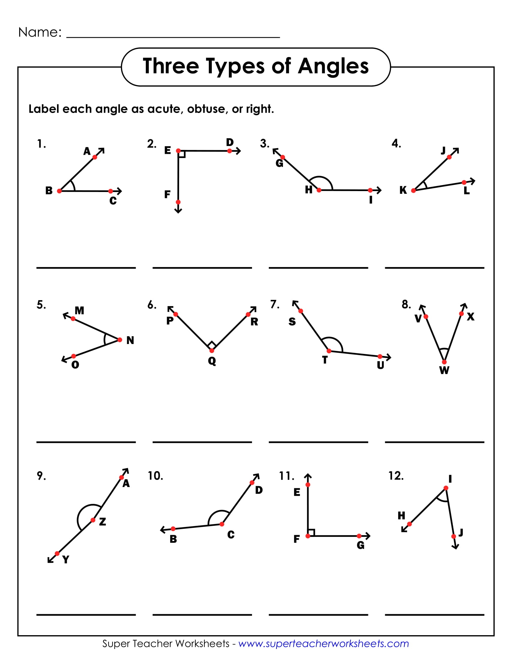 Worksheet on Naming Angles in Geometry