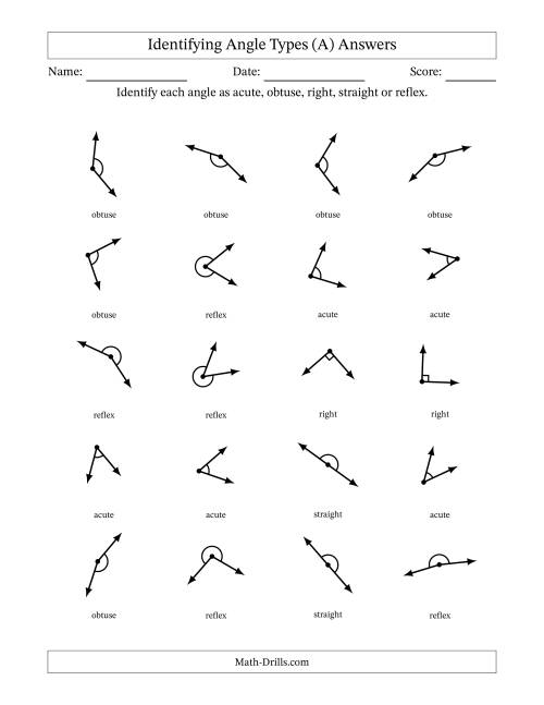 1. Identify the type of angle based on its measure: