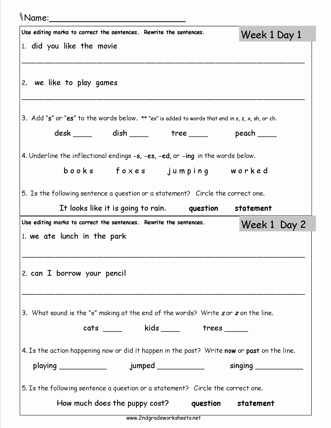 Another type of 2nd grade grammar worksheet is the “sentence correction” activity. In these worksheets, students are given sentences with errors in grammar, punctuation, or spelling, and they must identify and correct the mistakes. This type of activity helps students practice proofreading and editing skills, as well as reinforcing proper sentence structure and punctuation rules.