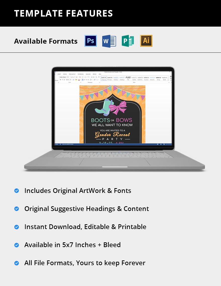 In conclusion, the boots or bows invitation template is a fun and creative way to announce the gender of your baby and get your guests excited for the big reveal. Whether you’re a fan of western style or feminine charm, this versatile theme is sure to impress your guests and set the tone for a memorable celebration. So why wait? Get your boots or bows invitation template today and start planning your perfect gender reveal party!