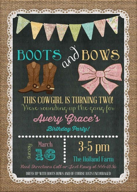The boots or bows invitation template features a charming design that combines elements of both western and feminine styles. The invitation typically includes images of cowboy boots and bows, along with a color scheme that incorporates both pink and blue. This versatile theme can be customized to suit your personal preferences, whether you prefer a more rustic look or a more elegant design.