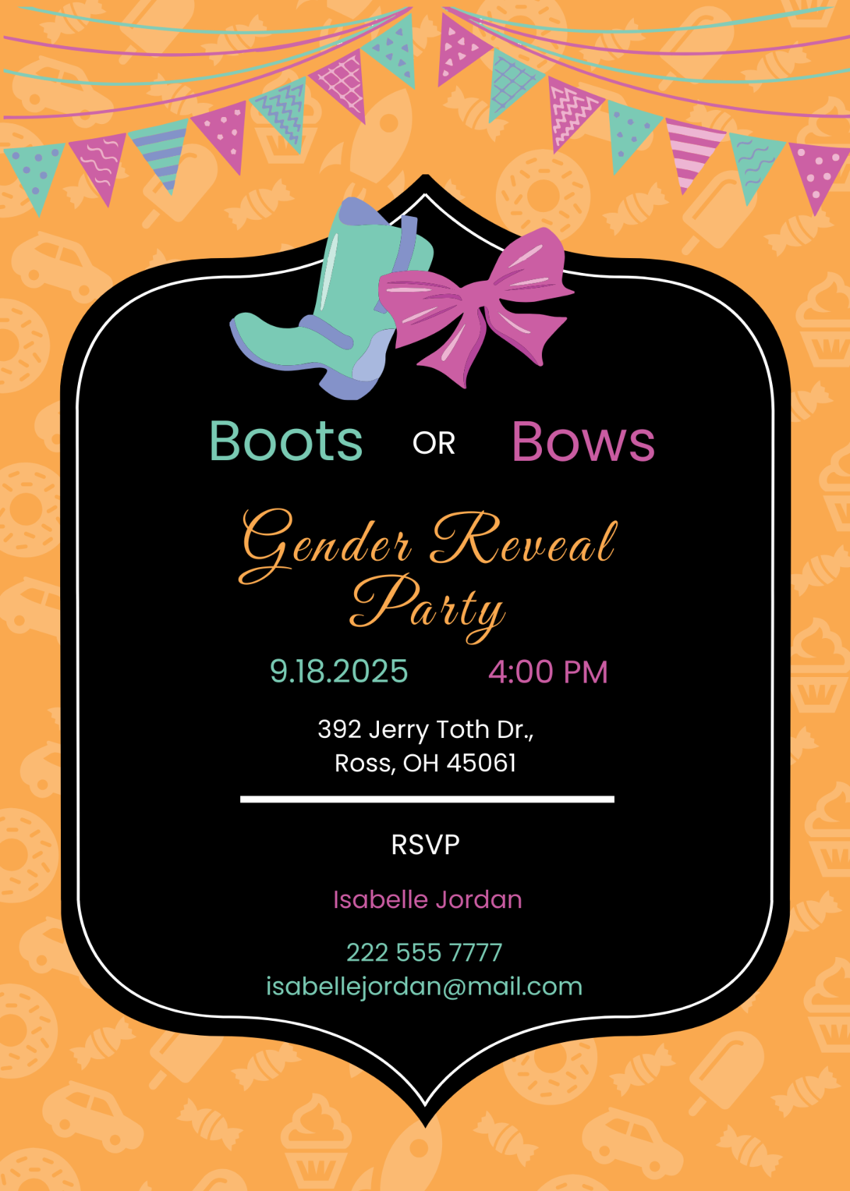Gender reveal parties have become increasingly popular in recent years, and the boots or bows theme is a charming twist on the traditional pink or blue color scheme. With this invitation template, you can set the tone for a fun and festive celebration that will have your guests eagerly anticipating the big reveal.