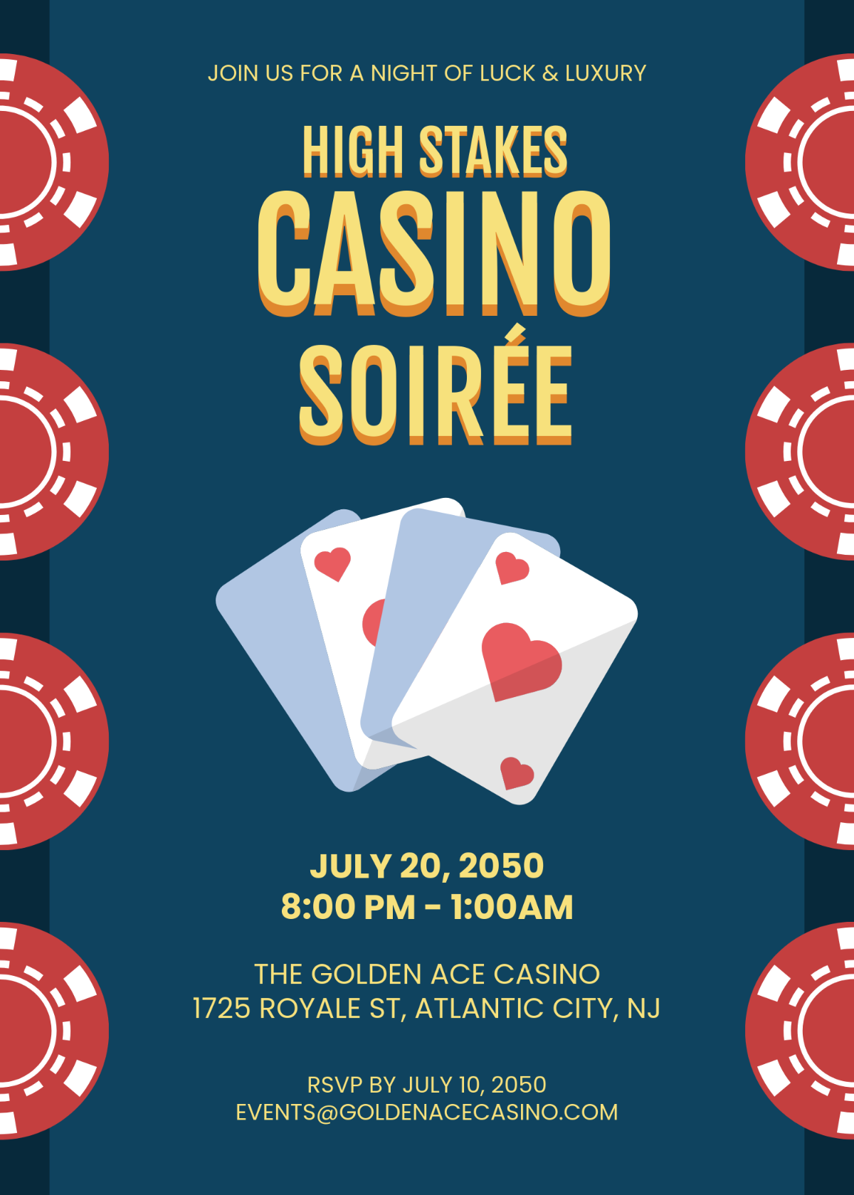Make your next event a hit with our free casino theme invitation templates. With a variety of designs to choose from, you’re sure to find the perfect invitation to set the tone for a night of fun and excitement. Download one of our templates today and start planning your casino themed party!