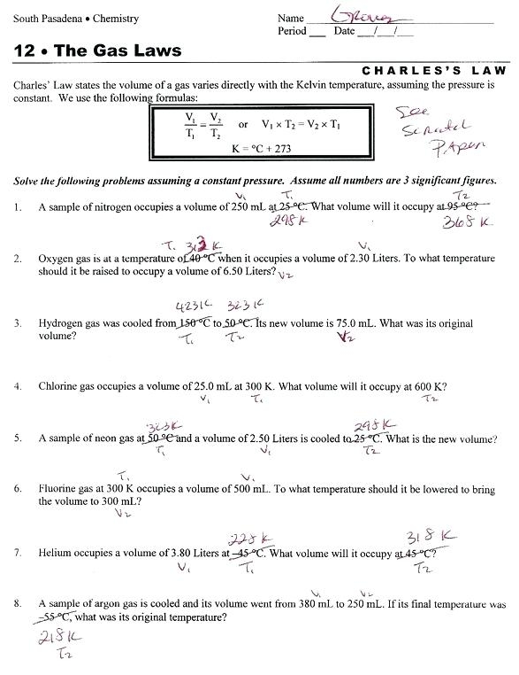 Charles Law Worksheet