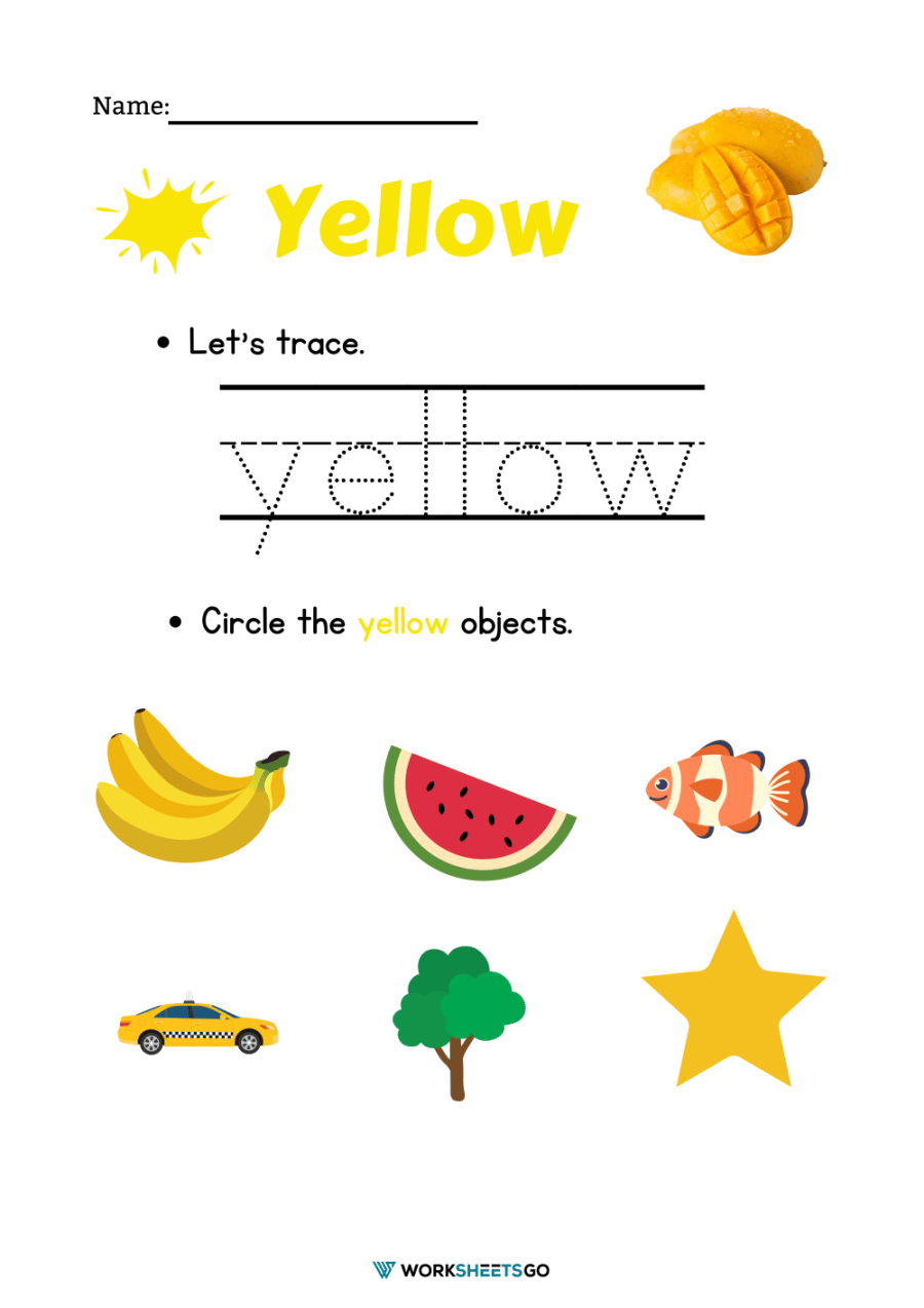 Color worksheets are a great way to introduce children to different colors and help them develop their color recognition skills. Yellow worksheets can include activities such as coloring, matching, tracing, and identifying objects that are yellow. These worksheets can be a fun and engaging way for children to learn about the color yellow and develop their fine motor skills at the same time.