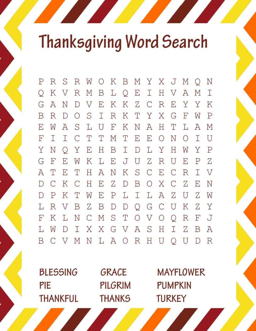 2. Word Searches: Keep your kids entertained with Thanksgiving word searches. These puzzles are a great way to improve their vocabulary and spelling skills. You can find free printable word searches online that are suitable for different age groups.