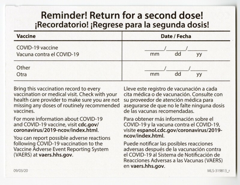 COVID 19 Vaccination Record Card