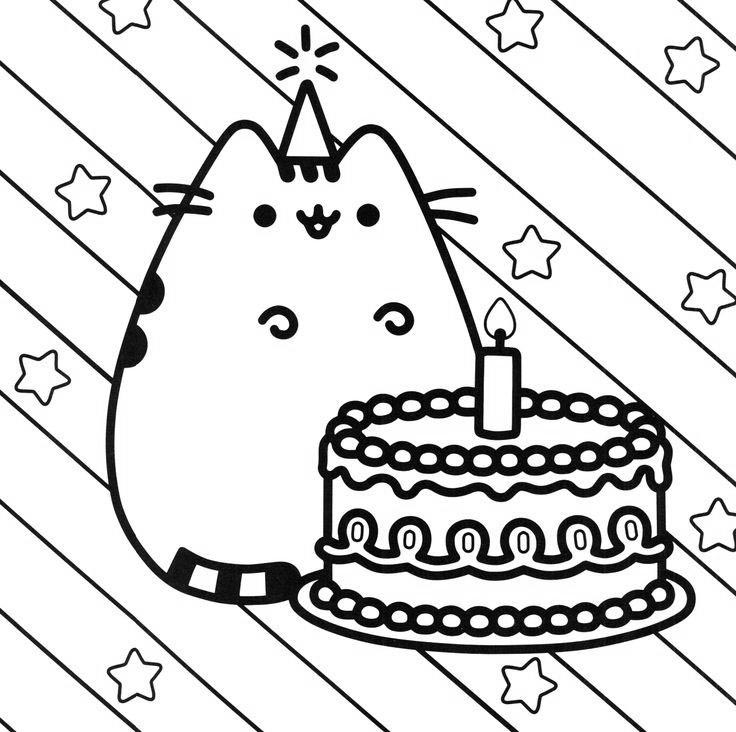 Happy Birthday Pusheen Cat Coloring Pages Free Printable Coloring Pages