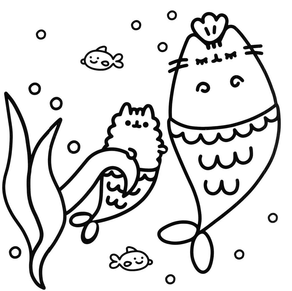 Pusheen Cat Coloring Pages Two Mermaids Coloring Sheets Free