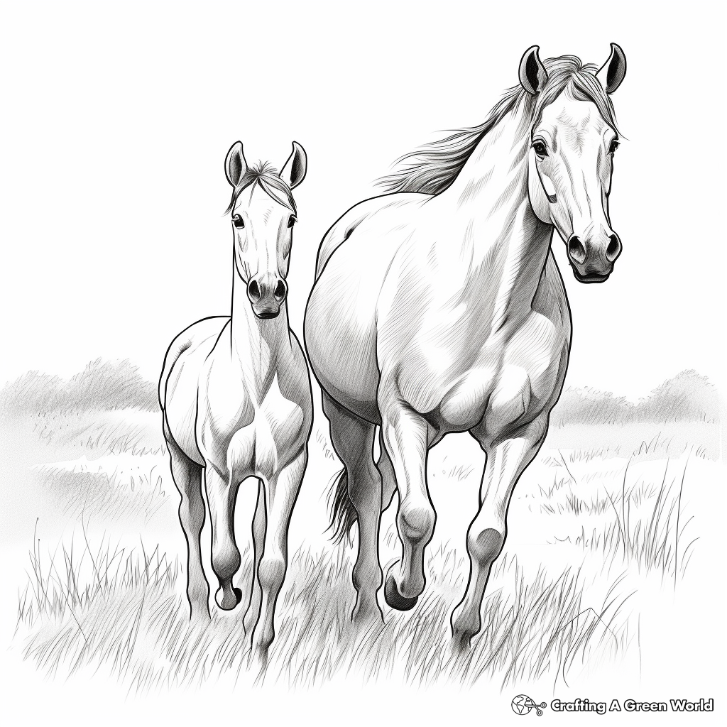 One popular theme for realistic horse coloring pages is the majestic stallion galloping through a field, mane flowing in the wind. This dynamic pose captures the power and grace of these magnificent animals, making for a striking coloring project.