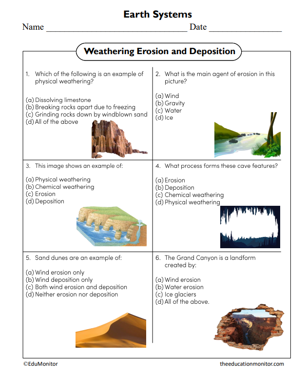 One way to help students understand these concepts is through the use of worksheets. These worksheets can provide hands-on activities and exercises that allow students to explore the effects of weathering, erosion, and deposition in a controlled environment.