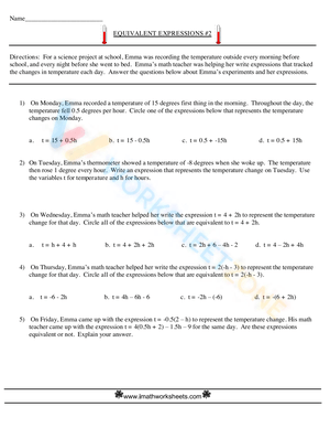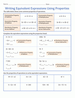 When it comes to algebra, understanding equivalent expressions is crucial. It allows us to manipulate and simplify expressions without changing their value. One effective way to practice writing equivalent expressions is by using properties worksheet. These worksheets provide a structured approach to mastering various properties of algebraic expressions.